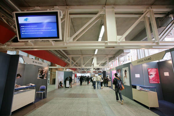 BolognaFiere一直在尋找一種更新穎、有效的方式與參展者及參觀者溝通。但這個溝通平台必需要同時保有這個展覽中心本身的創意、高科技感。數位看板動態、即時的特性,即成為展覽管理者最佳選擇。