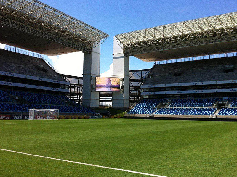 在2014世界盃足球賽期間舉辦多場賽事的潘塔納爾球場,場內共設置200台鎧應SMP-WEB4多媒體播放器,利用高畫質AV-in影像輸入功能,將即時比賽傳送至場內各角落的大型LED與LCD螢幕,包括看台、貴賓室、美食廣場和商品專賣店等,讓球場內的所有球迷,都可以透過大螢幕的即時轉播,分秒掌握精彩賽事!並透過入口處或票務櫃檯的資訊與位置導航看板,提供球迷多元的諮詢服務。數位化的影音內容,更同時成為促銷與播放贊助商形象的最佳途徑。