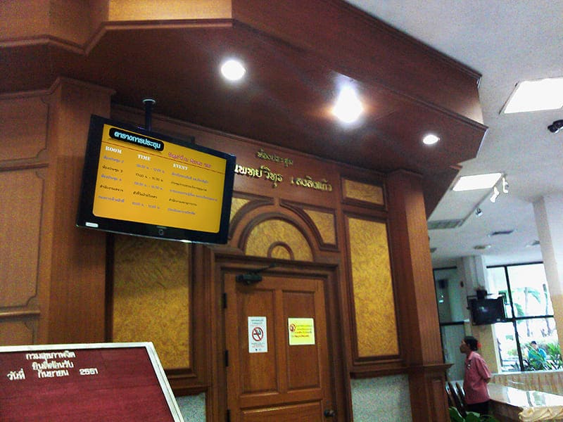 透過DMaSStech (Digital Media and Signage Solution Technology),泰國公共衛生部在其心理衛生大樓的會議室,安裝了鎧應科技的數位看板系統。此套系統延伸了e化政府的應用,並提供市民們即時的會議資訊。此系統更進一步的減少繁複的營運及管理成本,為該部門建立了更好的形象。