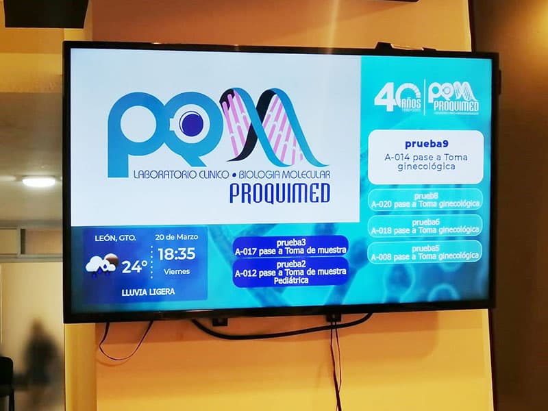 Proquimed 實驗室應用鎧應科技的數位看板解決方案以解決其為了優化病人流程管理,將客製化叫號系統整合進數位看板時所面臨的挑戰。本專案透過鎧應科技墨西哥經銷商Reed Multimedia和廣告代理商difraxion以專業經驗成功完成佈署。鎧應科技的數位看板解決方案為Proquimed實驗室帶來最佳的醫療保健體驗。