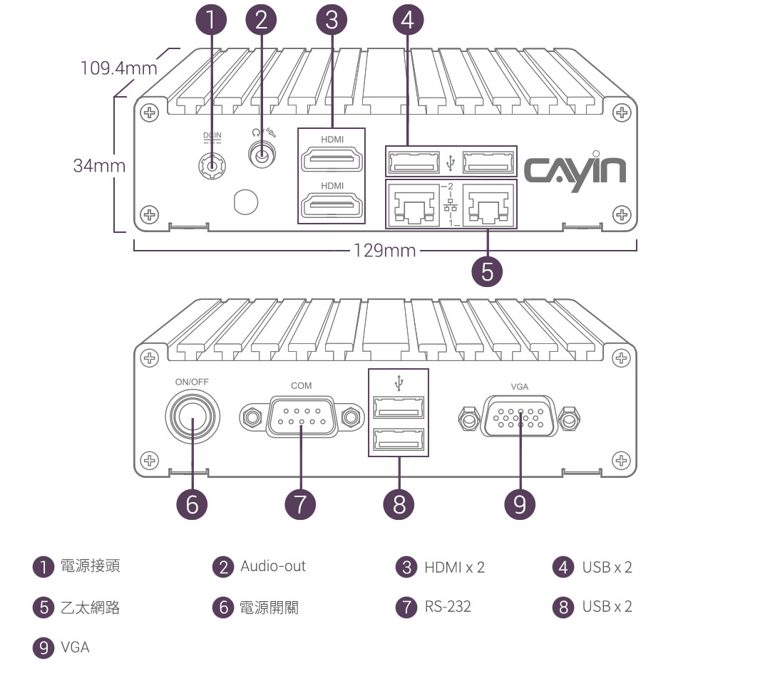 129 (W) x 109.4 (D) x 34 (H) 公釐